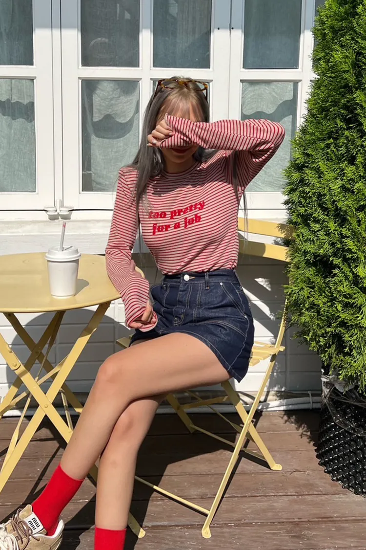 AG1017 金髮-細條紋too pretty下捲邊羊絨28%天絲上衣.3色