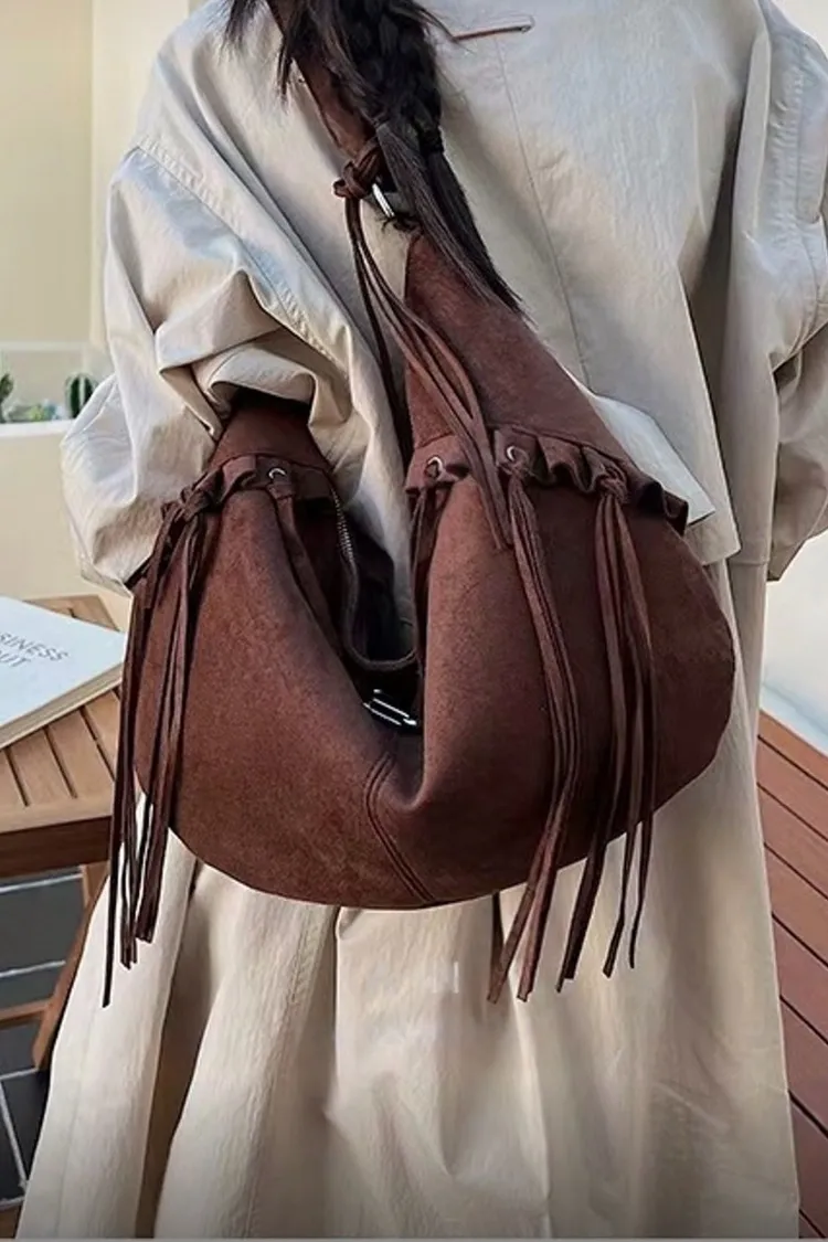 AR1005 鞋/包配件-許願款!小釦環麂皮流蘇餃子包.3色
