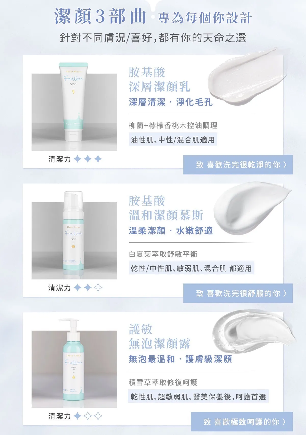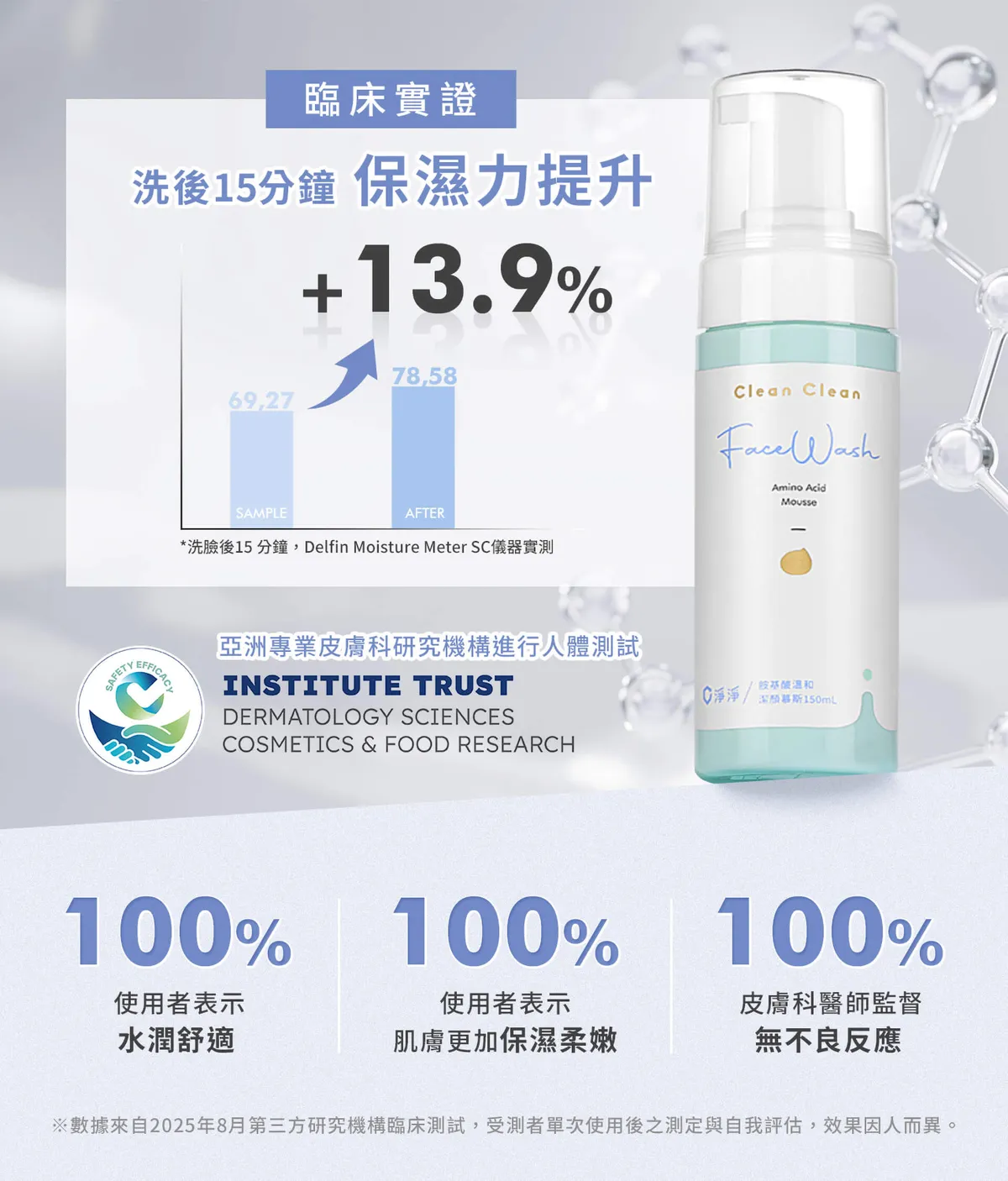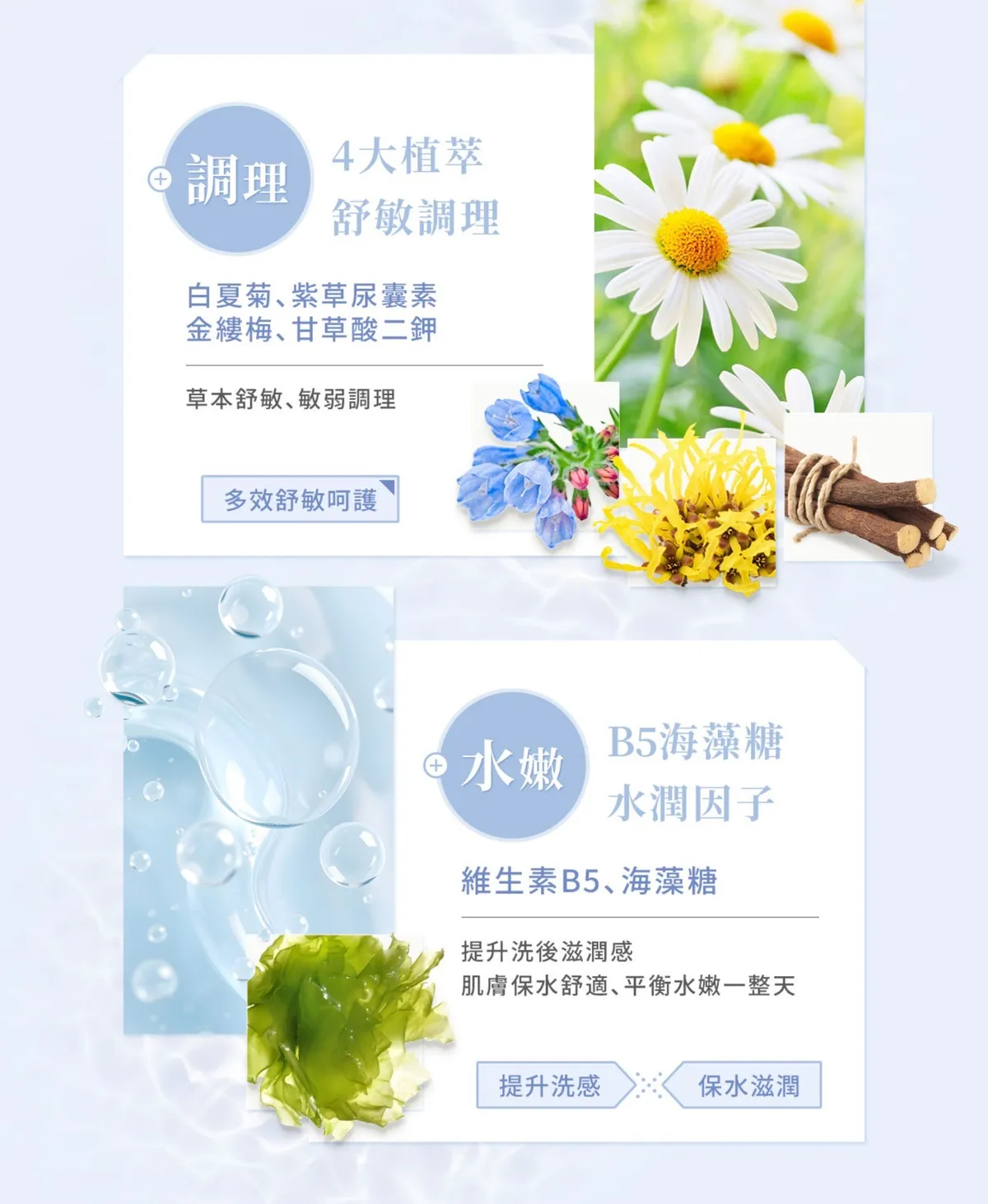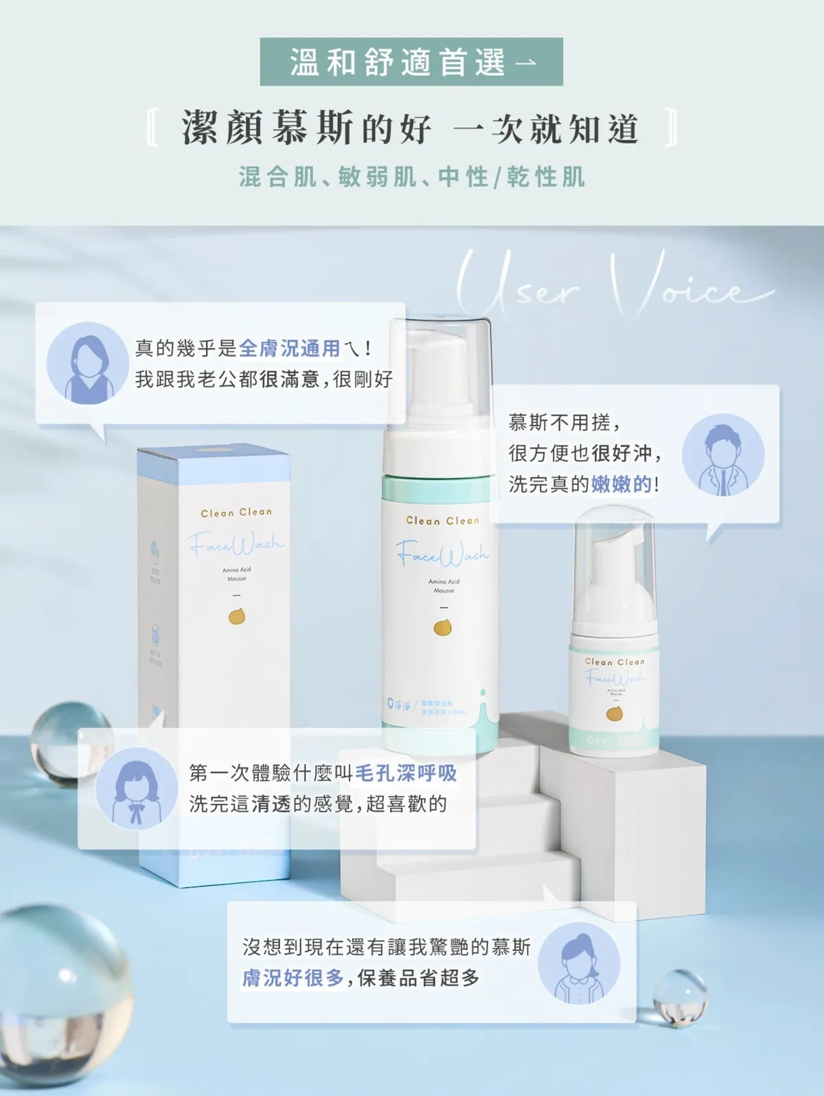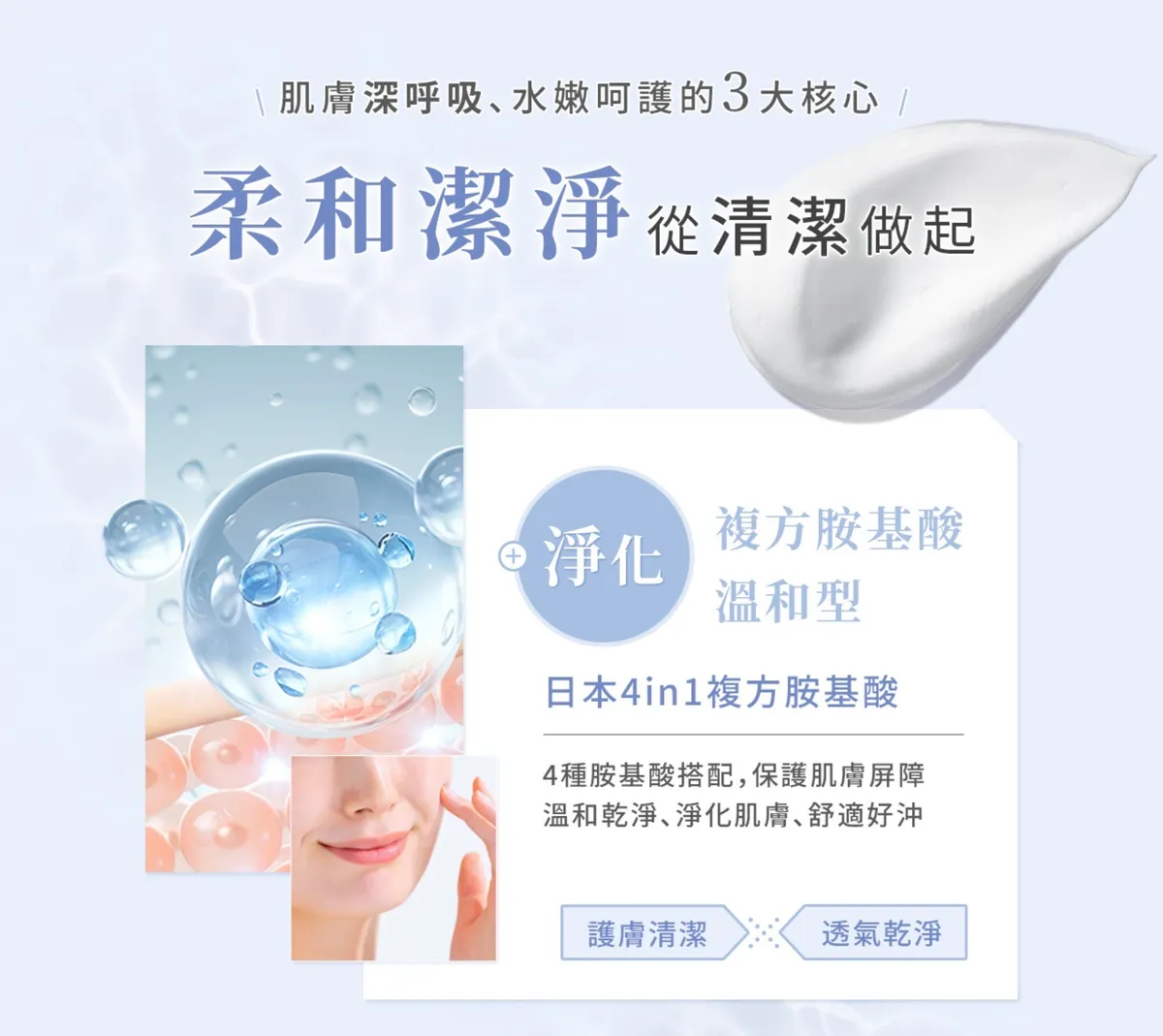 [商品特色] 通過德國敏肌權威檢驗認證-最高等級標章通過亞洲專業皮膚科研究機構-人體測試100%無不良反應慕斯質地溫和乾淨、淨化肌膚、舒適好沖洗來自日本四款植萃胺基酸,調理舒敏保護肌膚屏障草本多效呵護:白夏菊+紫草尿囊素+金縷梅+甘草酸二鉀添加維生素B5+海藻糖,提升洗後滋潤感肌膚保水舒適、平衡水嫩一整天【適合膚質】:油性肌、乾性、中性肌、敏弱肌、混合肌無皂鹼、SLS/SLES等爭議成分、使用更安心致喜歡洗完很舒服的你