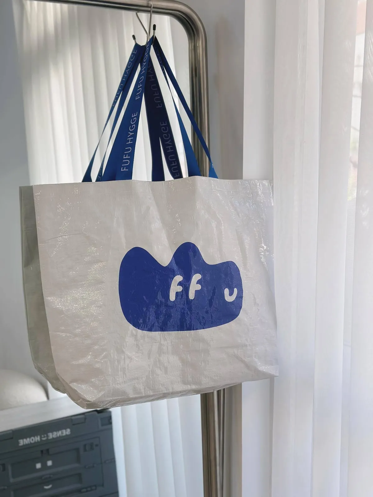 \ FUFU家族成員 /(FUFU) (YO JA GOO) (DO GOO) (BO GOO)故事的開始 就是需要這4隻 在不同領域發揮所長每一隻都有它存在FUFU的意義 每一隻都是團隊的核心~都有它獨特個性!💙💙💙FUFU家族們的呈現 就像人跟人相處一樣各種磨合~把人生的邊邊角角修成圓角碰角 自己受傷 別人也受傷保護自己的同時~也不要去傷害其他人愛💖 和平☮️是品牌核心 Hygge(丹麥語)關於享受生活中簡單的快樂慢下來欣賞生活中的小時刻強調與所愛的人共度美好時光的重要性💙🔽 🔽 🔽✨ FUFU大容量環保購物袋 ✨🔽 正面 🔽 尺寸:長約57cm / 高約42cm(不含提帶) / 底長約42cm /底寬約16cm (人工測量會有些許誤差,請見諒!) 🔽 反面 🔽 💙💙💙FUFU HYGGE 提供給您不僅僅是餐飲、空間、選品,更是一種生活方式。