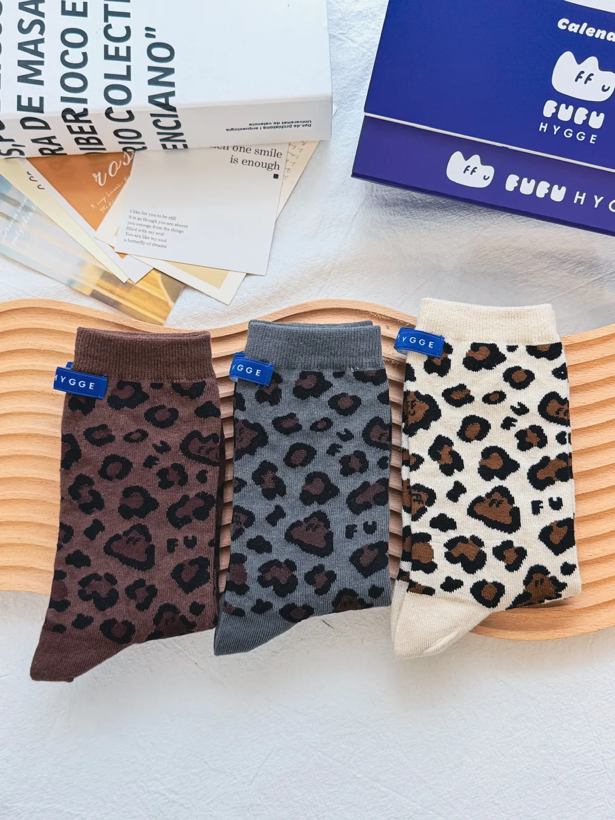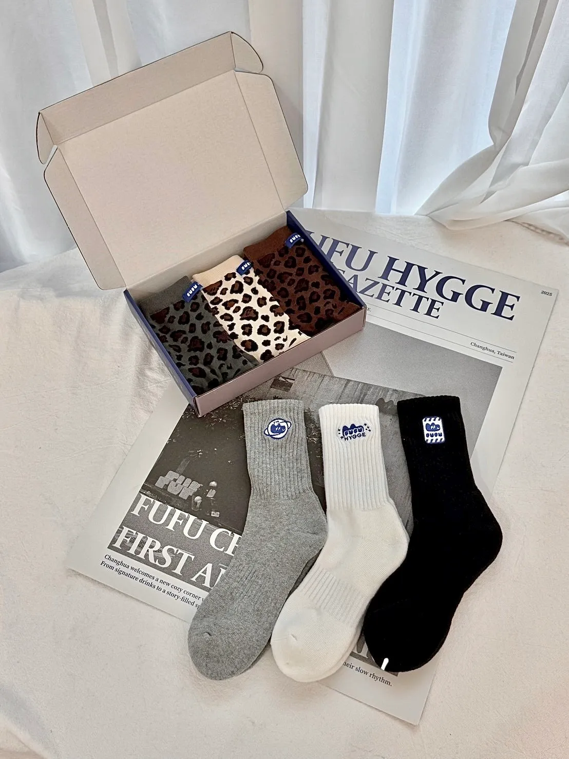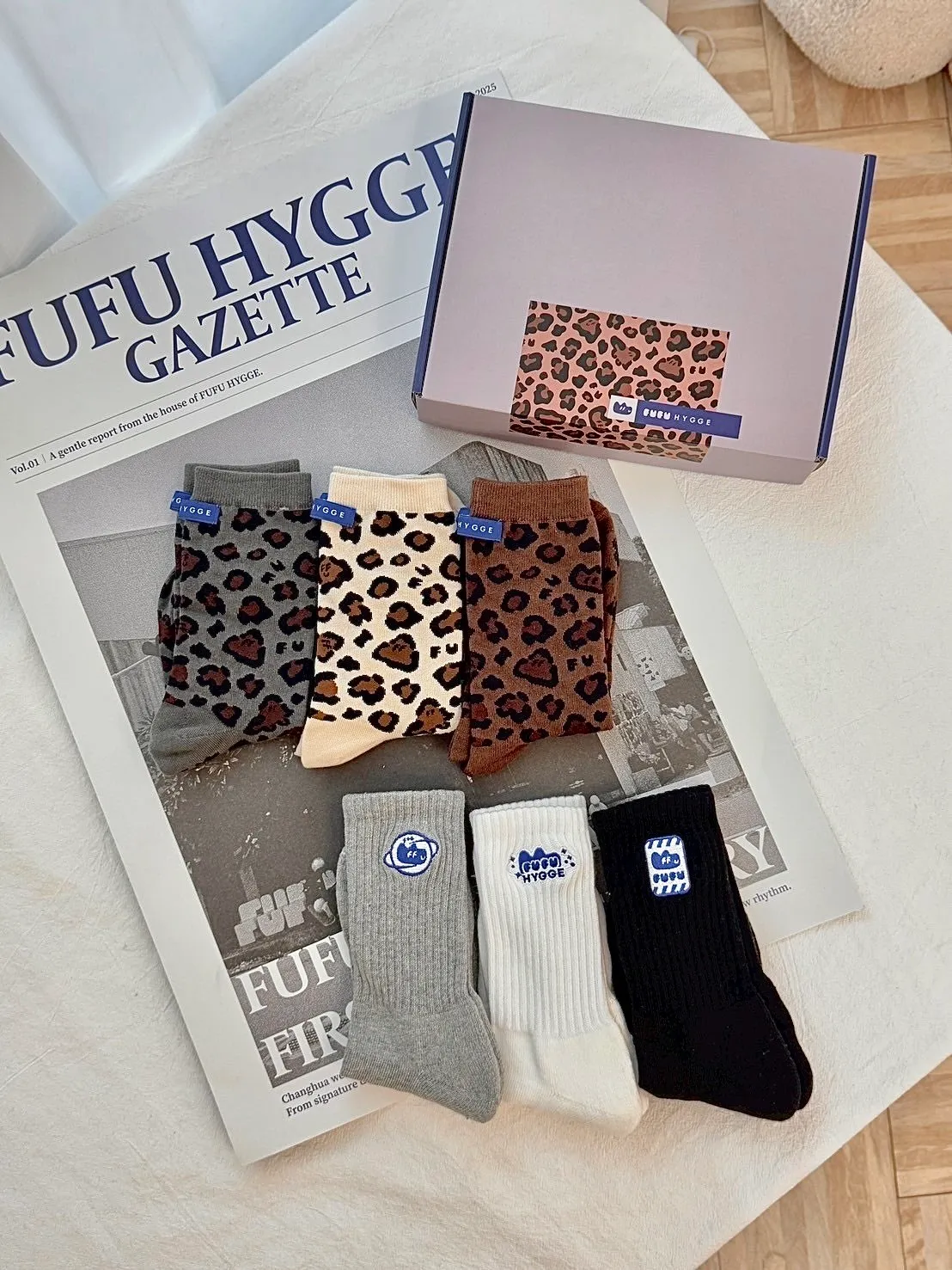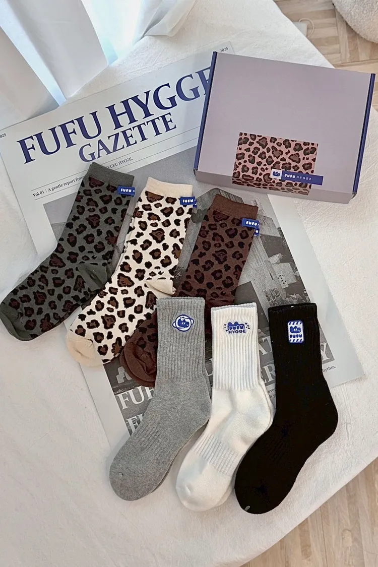 FUFU豹紋/素面三色一組長襪<小禮盒>.2款