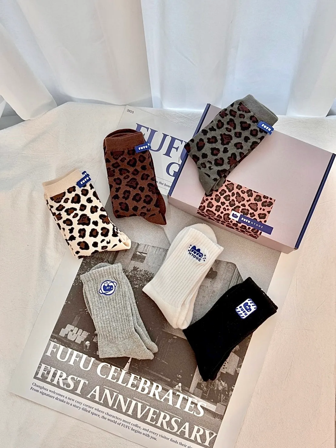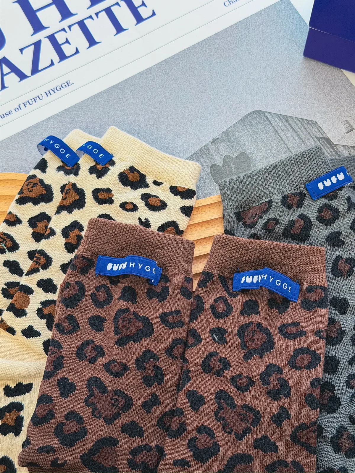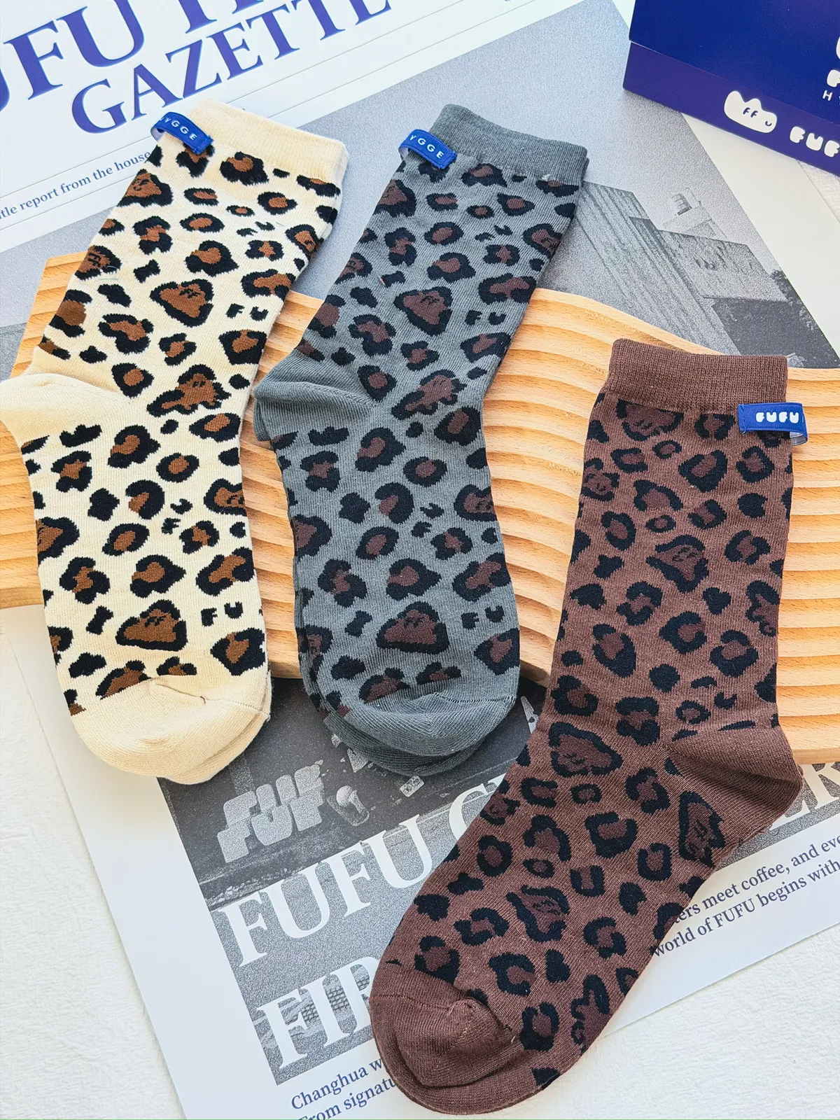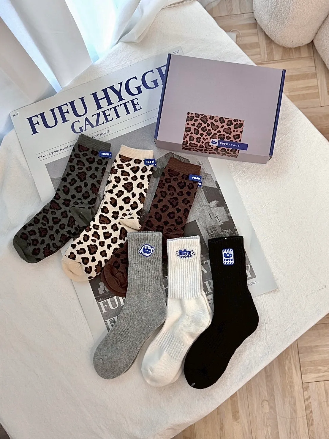FUFU豹紋/素面三色一組長襪<小禮盒>.2款