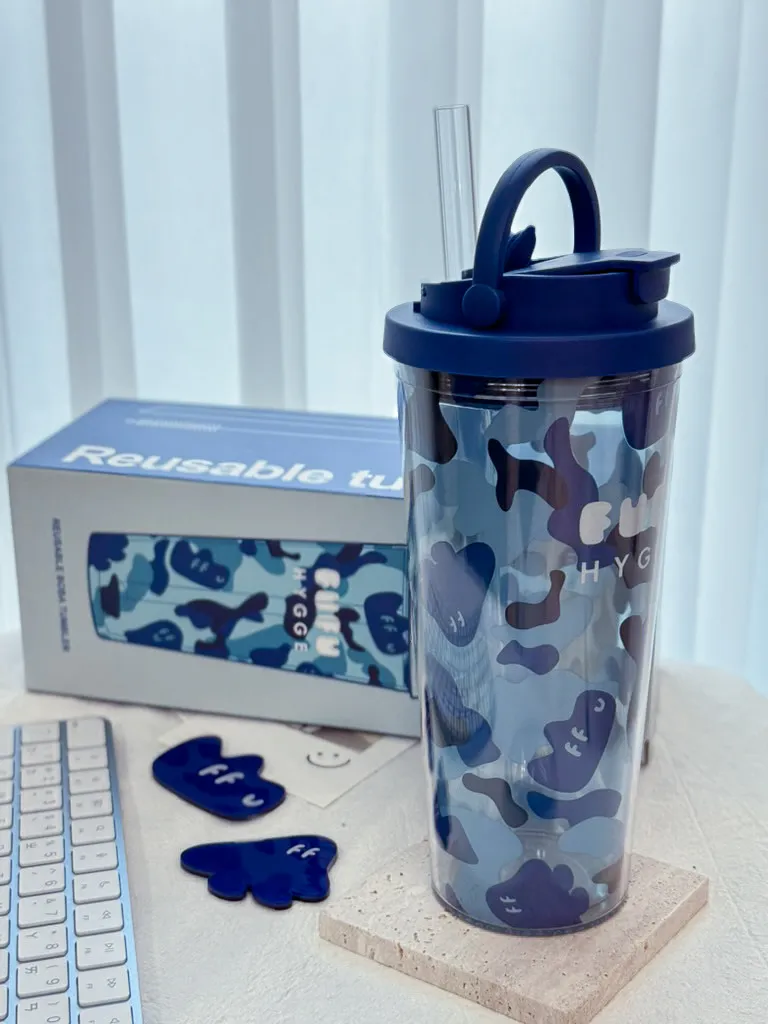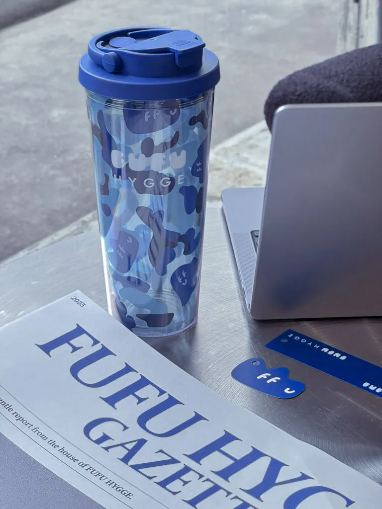 把FUFU 家族的四隻角色全塞進迷彩圖案裡,拼出屬於我們的第一年。
