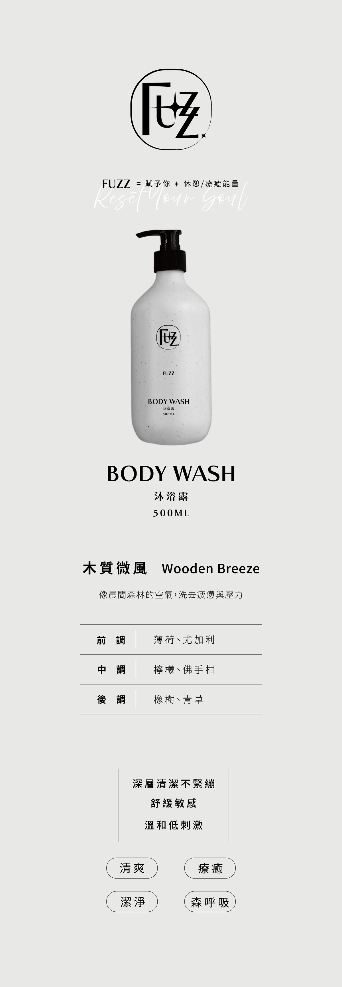 沐浴露 – 木質微風積雪草胞外體,維他命 B5,不含硫酸鹽起泡劑前調:薄荷、尤加利中調:檸檬、佛手柑後調:橡樹、青草【積雪草胞外體修護科技】• 來自積雪草的植物修護微粒,深入肌膚底層修復。降低肌膚的發炎反應(NF-κB 減少約 45%),可改善乾癢、紅疹、日曬後不適。• 幫助肌膚啟動自我修護力,舒緩乾癢與敏感。 • 持續使用可強化屏障,讓肌膚更穩定。【維他命 B5(泛醇)深層保濕】• 能滲透角質層並與水分結合,幫助肌膚維持長時間保濕。有效鎖水保濕、減少乾燥緊繃感。• B5 具抗炎特性,可舒緩日曬後、搔癢或輕微敏感。 • 幫助修復乾裂、粗糙肌膚,恢復柔嫩彈性。• 洗後滑潤不黏膩,肌膚水嫩有光澤。【療癒香氣 × 放鬆時光】• 淡淡積雪草草本香融合清新花果氣息。• 沐浴時幫助放鬆緊繃情緒,舒緩一整天的壓力。