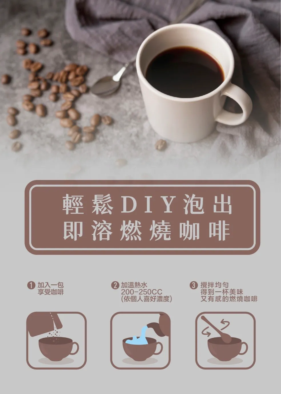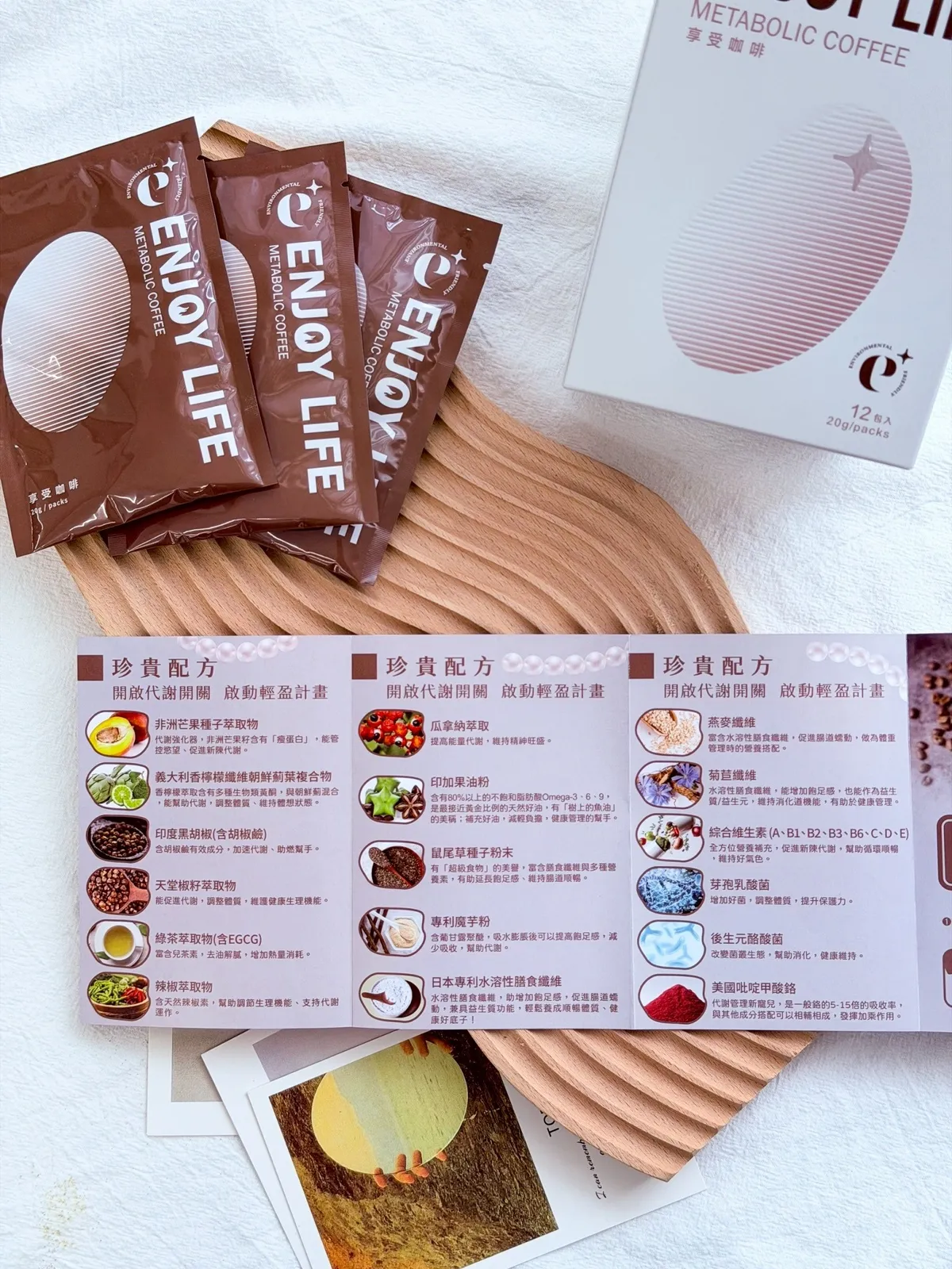 「一杯享受咖啡,開啟你24小時的代謝節奏」 一包20g . 12包/盒 喝對咖啡,代謝才會動! 每天喝咖啡,還是代謝差、常常水腫、嘴饞難控制? 這杯不是一般咖啡,是有在努力幫你「動起來」的代謝咖啡 結合非洲芒果籽、綠咖啡、EGCG、益生菌 提神也提效,燃燒也補菌 適合代謝慢、排便不順、想瘦卻總是卡關的你!一杯搞定!飽足感UP|燃燒力UP|排便順|精神清